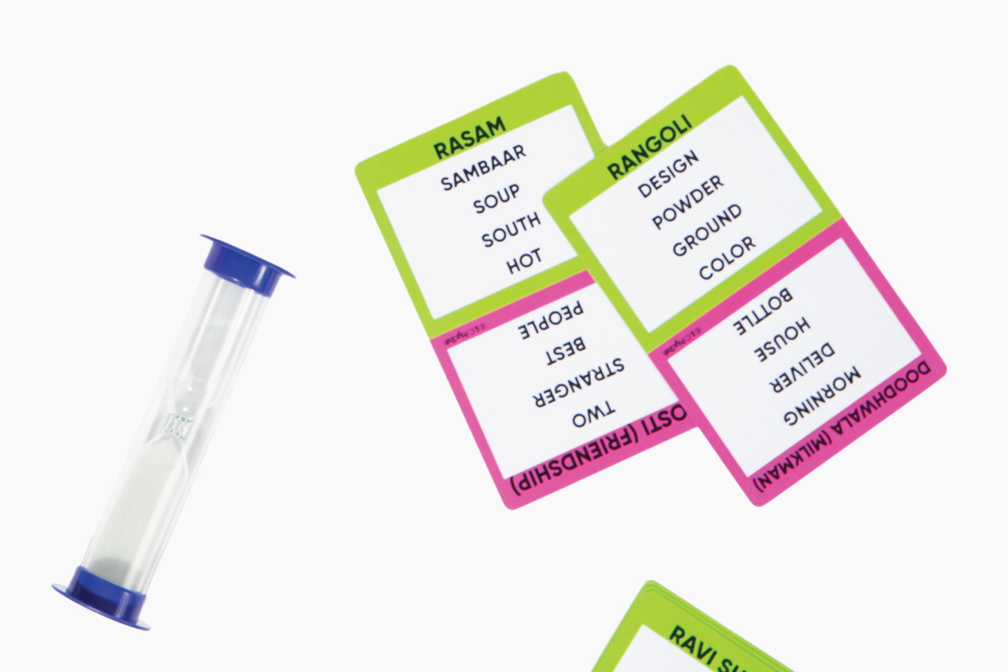 If you say any of the words on the card the player with the cowbell rings the bell and you have to go to the next card!