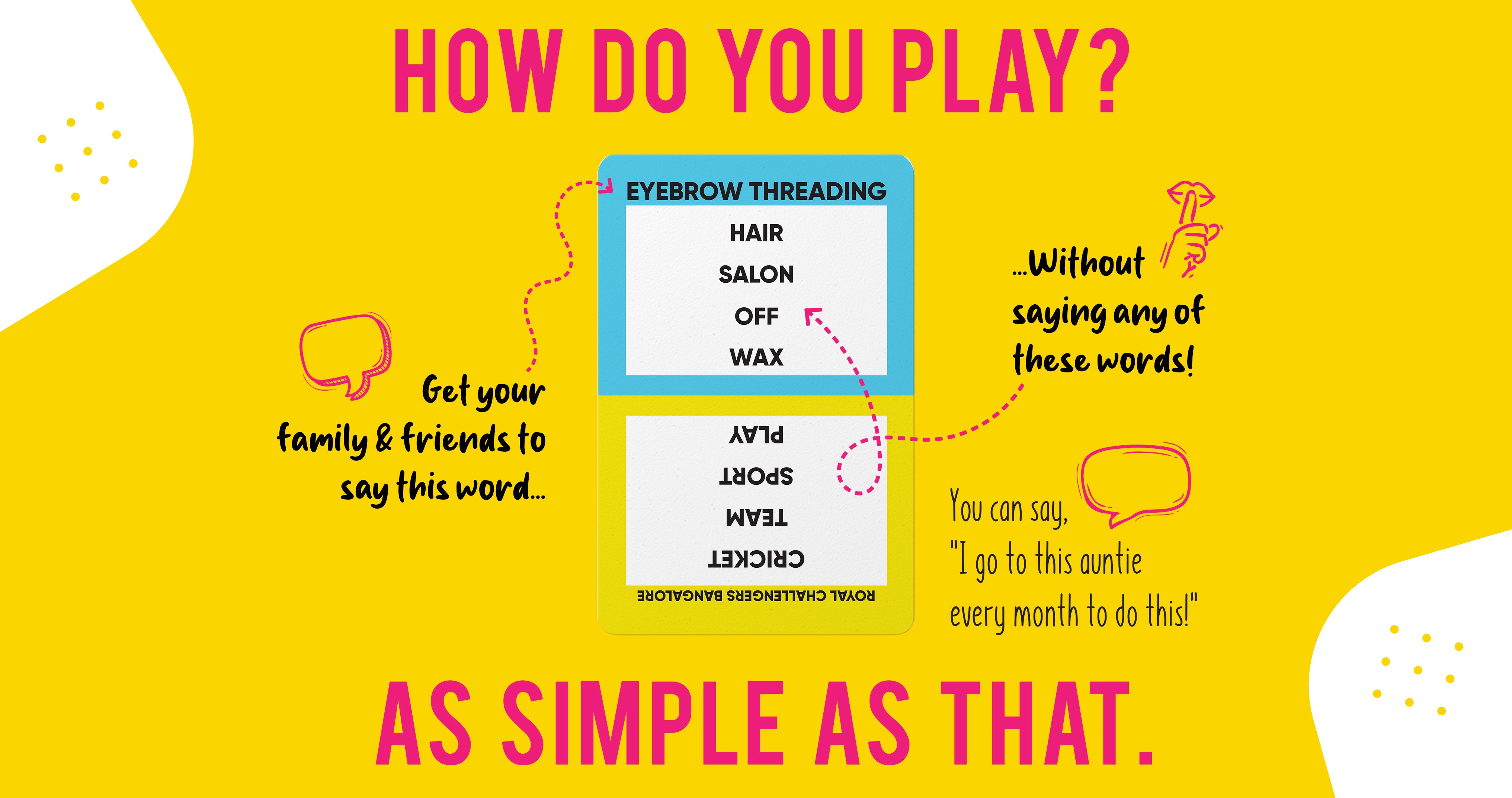 Example: How do you guess "Sachin Tendulkar" without saying the words "cricket", "batting", "sports" and "ball"? Guess these and 1499 Desi words for hours of fun for your family!